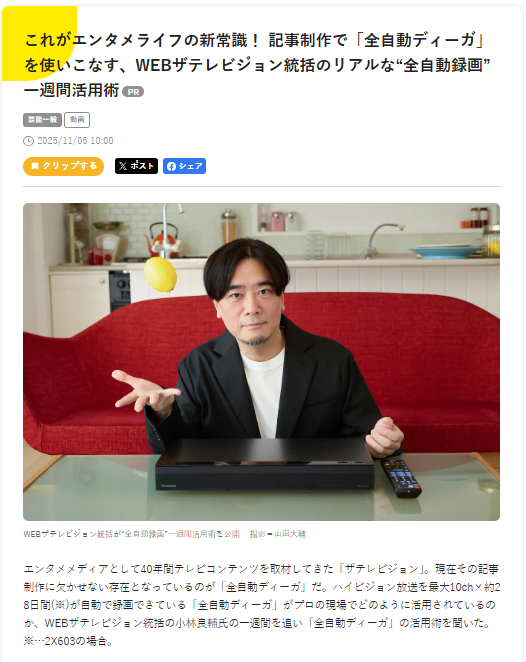 ●「WEBザテレビジョン」統括・小林良輔によるプロの現場での「全自動ディーガ」の活用術